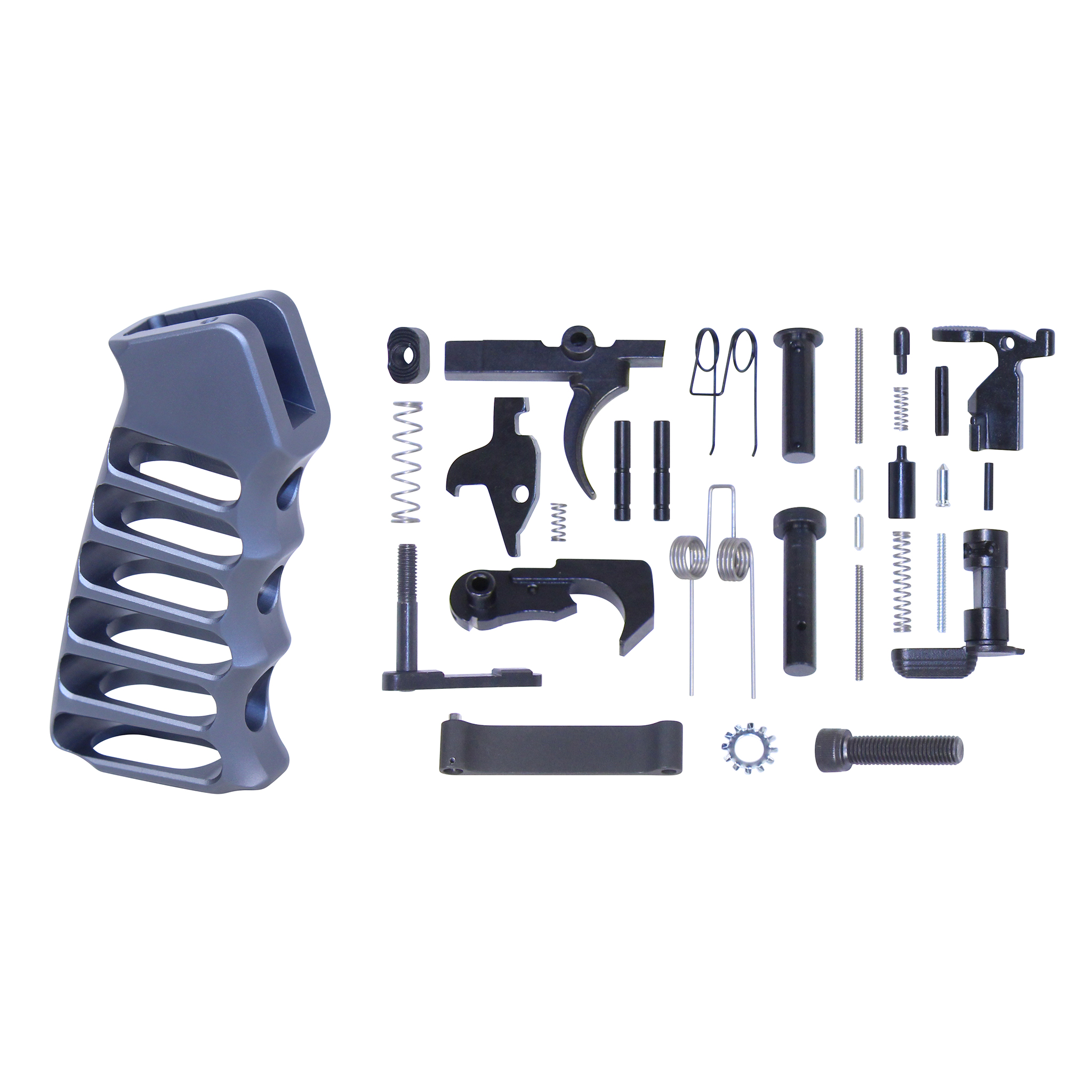 - Includes Skeletonized Aluminum Pistol Grip