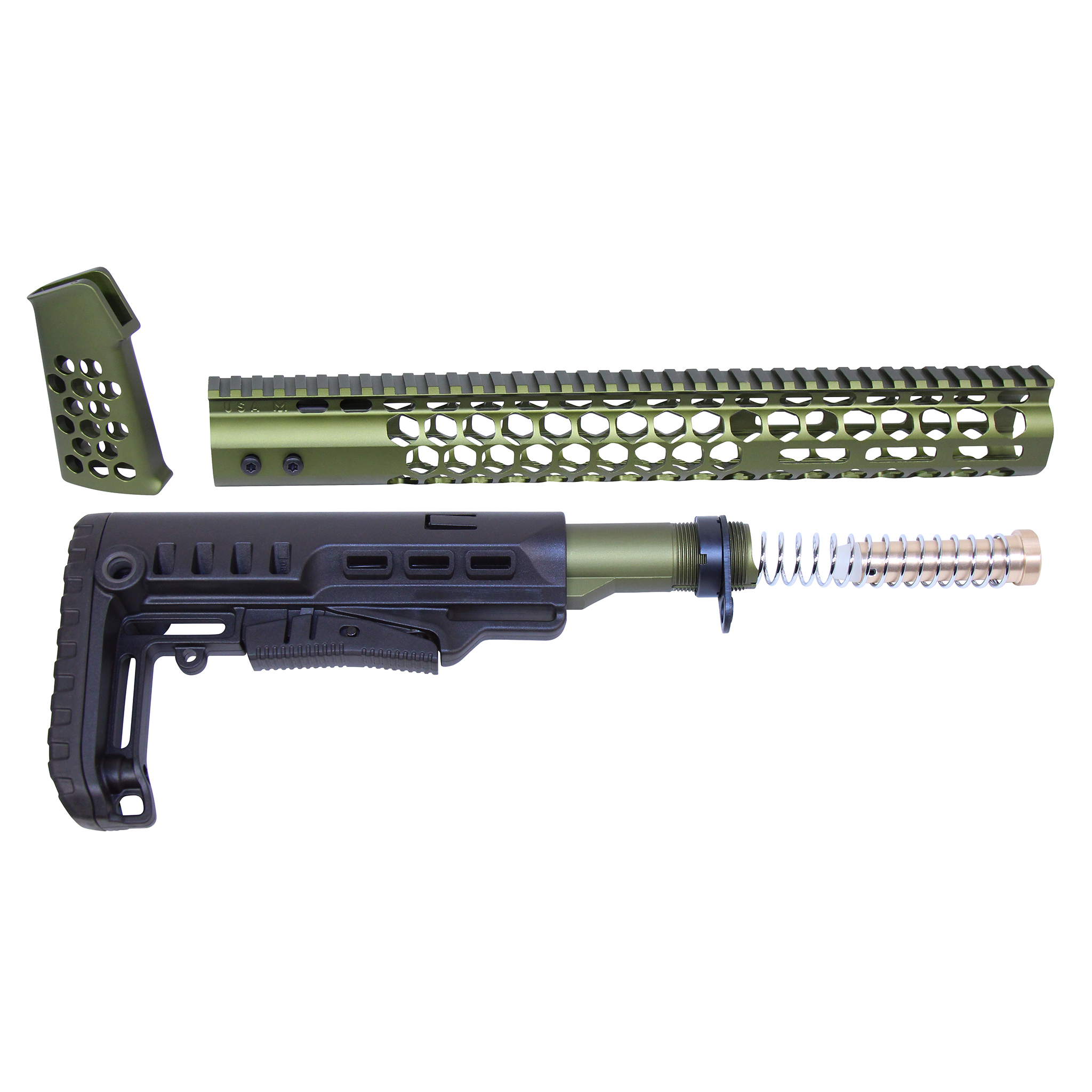 - Complete With Anodized Green Buffer Tube, End Plate, Castle Nut, Car H1 Buffer, & Chrome Recoil Spring